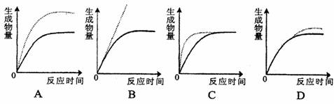 4.下图纵轴为生成物量,横轴为反应时间,其中能正确表示酶浓度增加,而其他条件不变时,生成物量变化的曲线图是(图中虚线表示酶浓度增加后的变化曲线) ( )