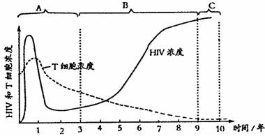 (1)HIV最初侵入人体的时期(A阶段)出现的变化是 。