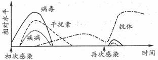 6.如图表示人患某病毒性疾病时,感染和免疫发生过程中某些量的变化。下列对免疫产生过程的分析不正确的是 ( )
