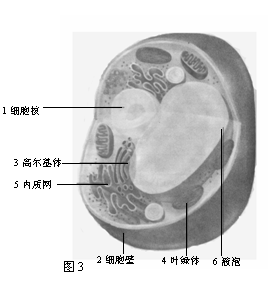 16.如图3为植物细胞模式图,请据此回答:动物细胞缺哪些构造? A.2、4、6 B.1、4、3 C.4、5、6 D.1、2、4