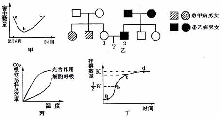 D.由丁图可看出,b点时种群增长率最大,种内斗争也最强烈