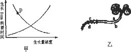 36.将植物横放,测量不同浓度生长素条件下根和茎的生长状况,如图甲所示。则曲线上的P点最可能对应乙图中的位置是