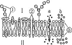 38.右图表示细胞膜的亚显微结构,其中a和b为物质的两种运输方式,下列对细胞膜结构和功能的叙述错误的是
