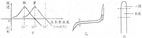 (1)乙图中a测生长素浓度大于 m/L,b侧生长素对根生长的效应是 。