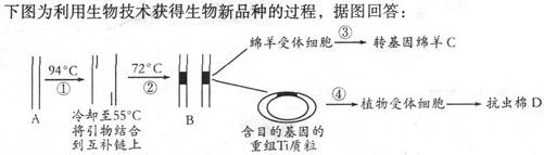 (3)B→D为抗虫棉的培育过程,其中④过程常用的方法是 ,要
