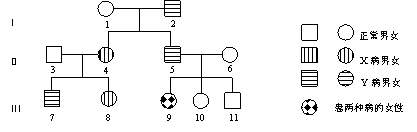 (4)若Ⅲ8与Ⅲ11结婚,生育一个只患一种病子女的概率为 ,生育一个两病兼发的子女的概率为 ,生育一个男孩正常的概率为 。