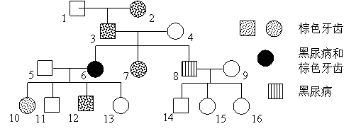 (4)假设某地区人群中每10000人当中有1个黑尿病患者,每1000个男性中有3个棕色牙齿。若10号个体与该地一表现正常的男子结婚,则他们生育一个棕色牙齿有黑尿病的孩子的概率 __ _。(2分)