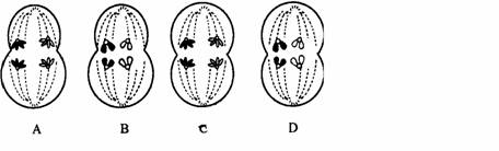 28.在下图中属于次级卵母细胞继续分裂过程中染色体平均分配的示意图是: