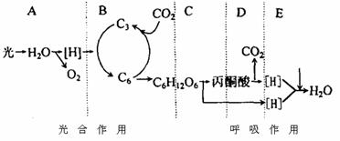 5.(6分)下图为光合作用和呼吸作用部分过程的简图,请仔细分析后回答下列问题: