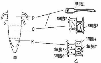 ( 8 分)下图甲为某植物根尖示意图,下图乙是 P 、 Q 、 R 的细胞放大示意图。请回答: