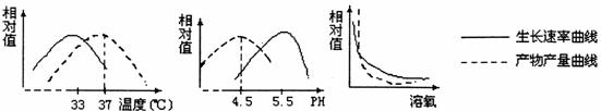 38. ( 8 分)有一种能生产食品香料添加剂的细菌,其生长速率、代谢产物的产量与培养液中的温度、 pH 、溶氧量等关系如下图所示: