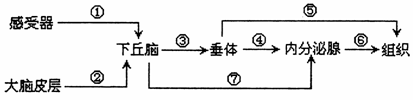 ( 2 )寒冷的冬季,垂体受到来自下丘脑分泌的 刺激,合成并分泌某种激素,促进甲状腺合成并分泌甲状腺素,从而加速新陈代谢,使机体抵御寒冷。
