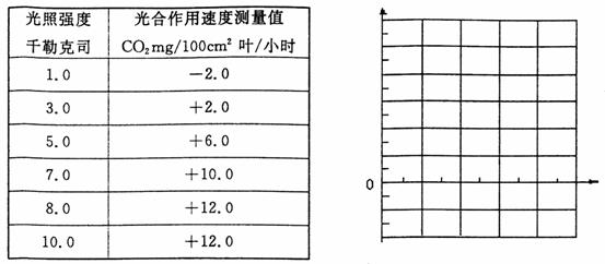 ( 1 )在右侧坐标系上绘出光照强度与该植物叶片光合作用速度的关系图。