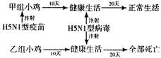 2.下图是科研人员对研制的H5Nl型禽流感疫苗进行动物实验的过程(甲、乙两组为数量相同的健康小鸡)和结果,有关分析错误的是
