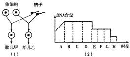 4.某夫妇的基因型都是AaBb(两对基因独立遗传),图(1)为该夫妇产生一对双胞胎的示意图,图(2)表示一种细胞分裂过程中DNA含量变化曲线。下列叙述错误的是