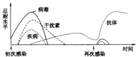 35.下图表示人患某病毒性疾病时,感染和免疫发生过程中某些量的变化。下列对免疫产生过程的分析不正确的是