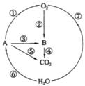 右图为物质循环简图,A为生产者,B为消费者。下列叙述错误的是