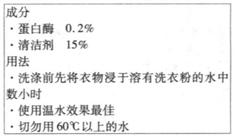 40.下表是某种加酶洗衣粉的成分及用法说明,下列对资料表明的信息理解正确的是