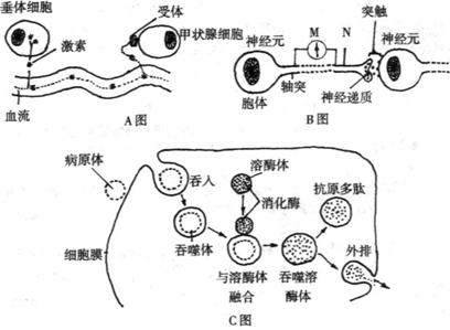 (3)当A图的垂体细胞受到B图的神经系统调节时,其调节中枢在 ,完成该反射活动的结构基础是 。