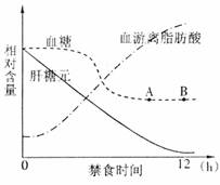安静条件下某人禁食期间内三种物质含量变化如图。