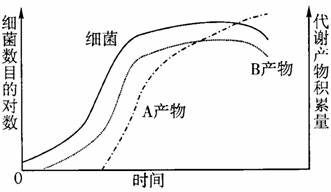 19.下图为某细菌的生长曲线及A、B两种代谢产物积累曲线 。