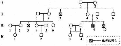 24.Duchenne肌营养不良是由法国神经学家Duchenne在19世纪60年代发现的遗传病,多见于男孩,通常在20岁左右死于呼吸系统并发症。下图为某个家族此遗传病的系谱图,请回答下列有关问题: