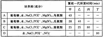 27.(6分)将甲、乙、丙、丁四种细菌分别接种到A、B、C、D四种培养液中,经