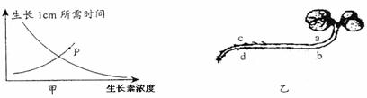 39.将植物横放,测量根和茎生长素浓度与其生长状况的关系如甲图所示。则曲线上P点最可能对应于乙图中的位置是( )