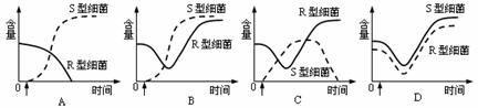 在肺炎双球菌的转化实验中,将加热杀死的S型细菌与R型细菌相混合后,注射到小鼠体内,小鼠死亡,则小鼠体内S型、R型细菌含量变化情况最可能是下图哪个选项