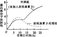 31、已知放线菌素D是RNA合成抑制剂。右图是根据海胆受精卵在有放线菌素D和无放线菌素D存在情况下培养时,对14C标记的缬氨酸参与蛋白质合成的实验结果绘制的曲线图。请据图回答有关问题:
