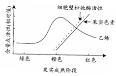 28、2006年普通高等学校招生全国统一考试(广东卷)番茄果实成熟过程中,乙烯释放量、果实色素积累及细胞壁松弛酶活性变化规律如右下图。从该图可得出乙烯能促进( )