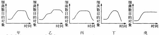 处于对数期的细菌作菌种、②连续培养、③溶氧不足、④在对数期内添加不同种类的适宜培养基,这四种处理与乙→戊图曲线对应的是 ( )