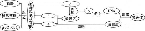 A.胸腺嘧啶、非编码区、内含子、外显子、基因