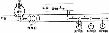 (3)图示肝细胞、脑细胞、肌细胞三种细胞中 细胞含糖元极少,需要随时从血液中摄取C物质和 物质(用图中字母表示)来氧化供能。