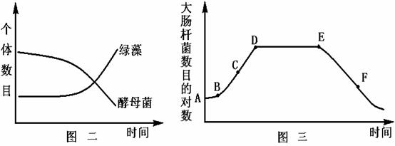 ②某同学用此培养基分别培养绿藻和酵母菌。他将培养装置放于光亮处,并连续测定培养液中绿藻和酵母菌个体的数量,绘制成曲线图二。造成两种生物此种生长现象的原因是