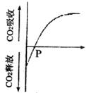 49.下图表示的是光照强度与光合作用强度之间关系的曲线,该曲线是通过实测一片叶子 在不同光照强度条件下的CO2吸收和释放的情况。你认为下列四个选项中,能代表细胞中发生的情况与曲线中的P点相符的是