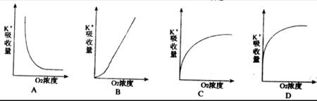 50.下图中正确表示水稻K+吸收量与氧气浓度关系的是