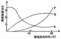 19.一运动员正在进行长跑锻炼,从他的大腿肌细胞中检测到3种化学物质,其浓度变化如下图。图中P、Q、R三曲线依次代表 ( )