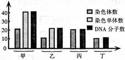 7.下图中甲-丁为某动物(染色体数=2n)睾丸中不同细胞的染色体数、染色体单体数和 DNA分子数的比例图,关于此图叙述中错误的是 ( )
