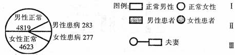 26.某遗传病研究所对一地区的人类遗传病进行调查,发现有一种遗传病表现出明显家庭倾向,且往往是代代相传,下图为该研究所绘制是的此病在这个地区10000人中的发病情况图。