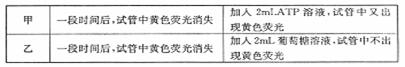 32.用小刀将数只荧火虫的发光器割下,干燥后研成粉末状。取两支试管,标上甲、乙,各加入2ml水和等量的荧火虫发光器研磨粉末,结果发现两支试管均有短时间黄色荧光出现。一段时间后出现的现象以及分别处理后出现的结果如下:
