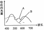 右图为用分光光度计测定叶片中两类色素吸收不同波长光波的曲线图,请判定A和B.分别为何种色素