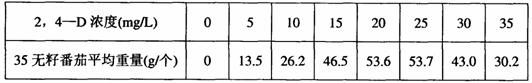 生物兴趣小组的同学对某品种番茄的花进行人工去雄后,用不同浓度的生长素类似物2, 4-D涂抹子房,得到的无籽番茄果实平均重量见下表。