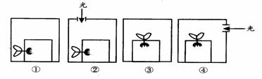 41.如图所示4株相同的蚕豆幼苗分别放在4个暗箱中一段时间,其中2号和4号暗箱分别在顶部和右侧开孔,使光线能射入。 如果要研究光与茎生长的关系,可选择的装置是
