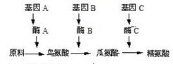 19.下图是红色面包霉(一种真菌)通过一系列酶将原料合成它所需要的氨基酸。据图分析,以下叙述正确的是 ( )