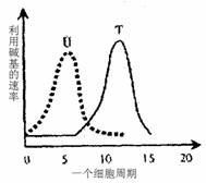 4.某科学家用放射性同位素分别标记的胸腺嘧啶(T)和尿嘧啶(U)培养蚕豆,观察其根尖分生区细胞的有丝分裂。已知蚕豆细胞一个有丝分裂周期是20小时。根据这两种碱基被细胞利用的情况绘制的曲线如图所示。下列对此结果的分析中,不正确的是( )
