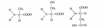 8、下图依次为丙氨酸、丝氨酸和天门冬氨酸的结构式。由这三个氨基酸脱水缩合所形成的化合物中,含有的氨基、羧基和肽键的数目分别是( )