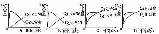 27.在光照下,供给玉米离体叶片少量的14C02,随着光合作用时间的延续,在光合作用固定CO2形成的C3化合物和C4化合物中,14C含量变化示意图正确的是 ( )