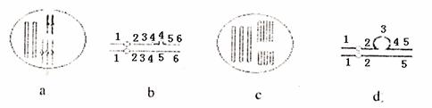 24.某些类型的染色体结构和数目的变异,可通过对细胞有丝分裂中期或减数第一次分裂时期的观察来识别。A、b、c、d为某些生物减数第一次分裂时期染色体变异的模式图,它们依次属于 ( )