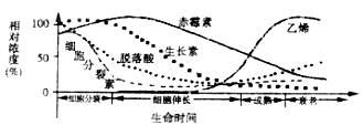 4.中国科学院的植物生理学家研究了几种果实发育及衰老等过程中的激素变化,并绘制出了下图。对此图的相关描述中不合理的是